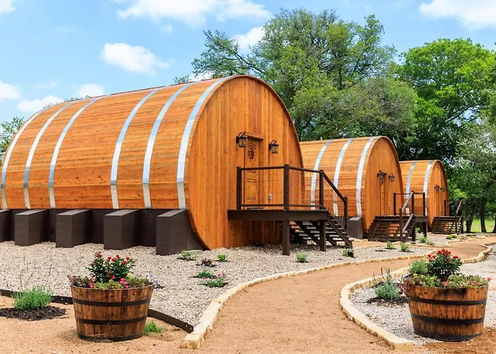 Die Unique Tempranillo Wine Barrel Cabin in Fredericksburg bietet eine unvergleichliche Unterkunftserfahrung, die sich harmonisch in die malerische Weinanbauregion einfügt. Dieses charmante Refugium verspricht sowohl Erholung als auch ein einzigartiges Ambiente, perfekt für Natur- und Weinliebhaber.